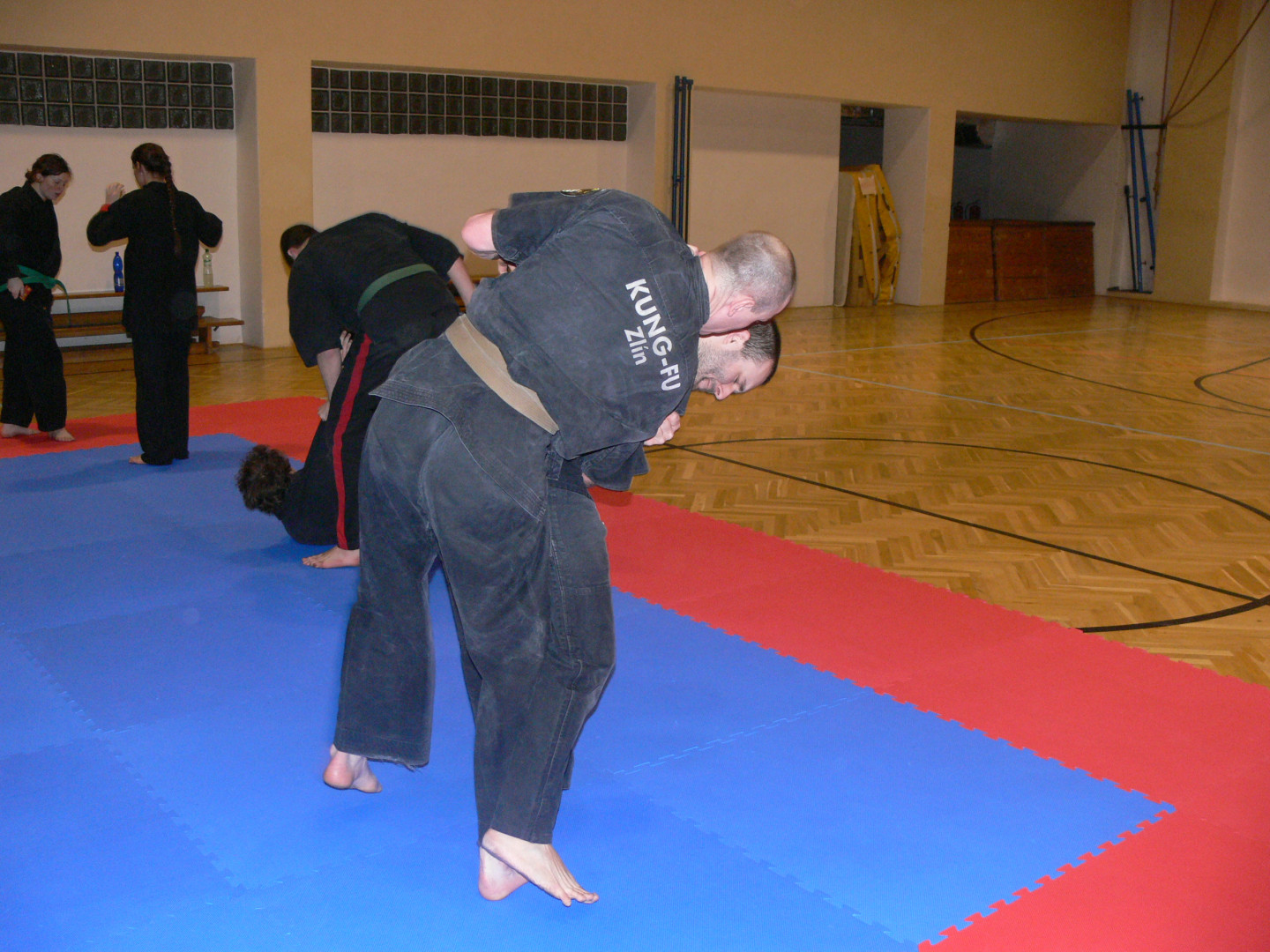 Na trénink stačí tričko, dlouhé tepláky, sálovou obuv.